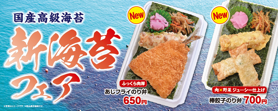 どんどんの春の定番!新海苔フェア開催です。国産の、一切妥協せずに選んだ上質な海苔を、各種のり弁でお楽しみください。
