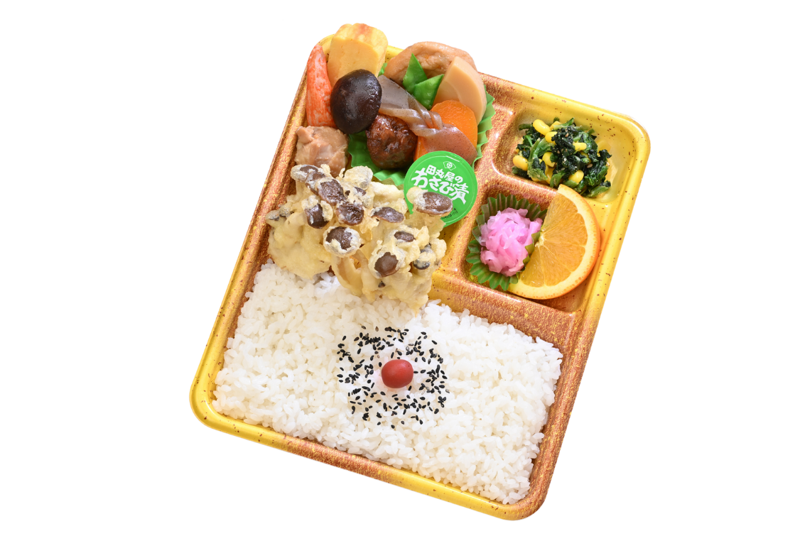 季節のごちそう「きのこ天ぷら」入りの幕の内弁当。